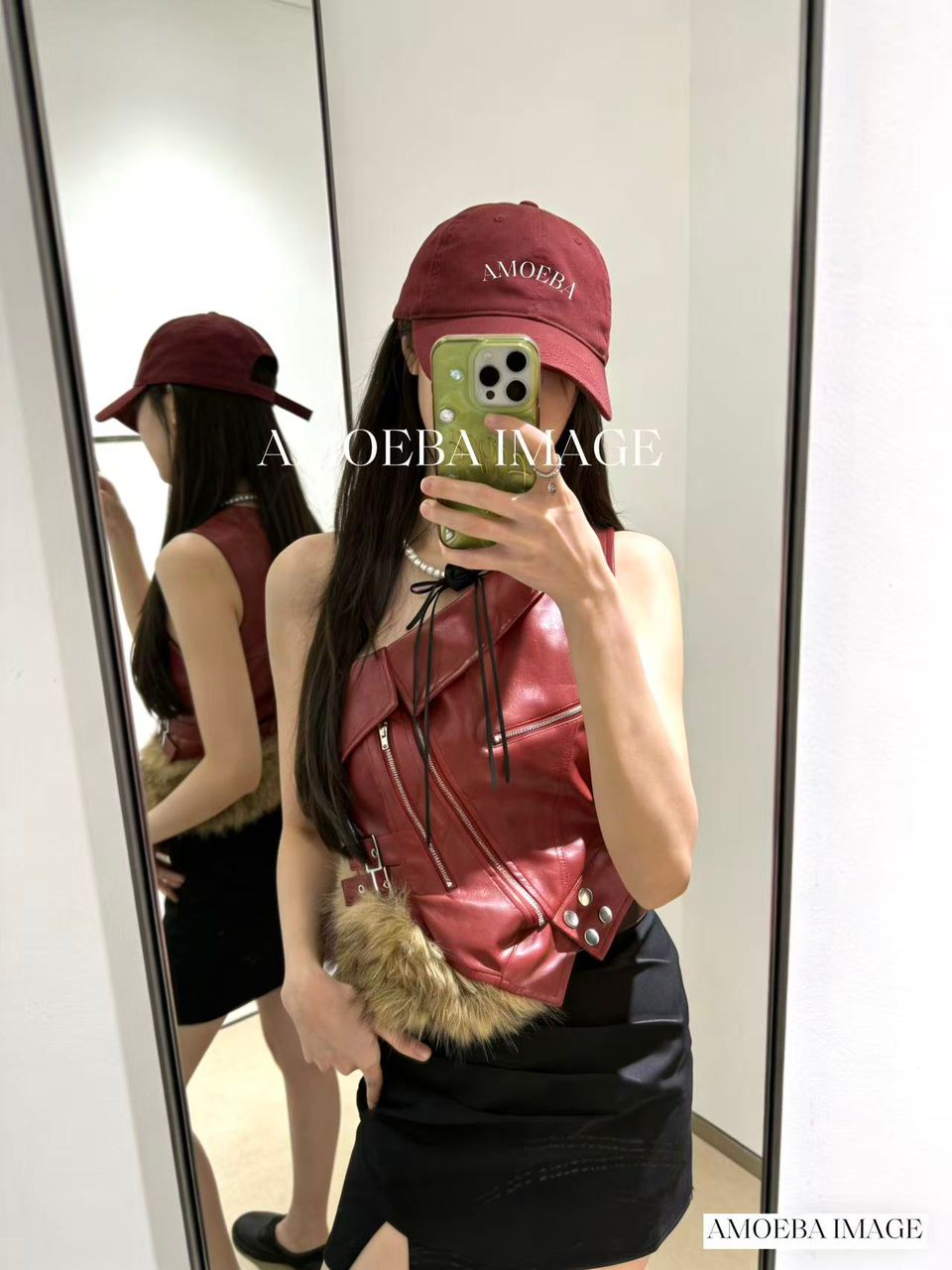 单肩皮衣