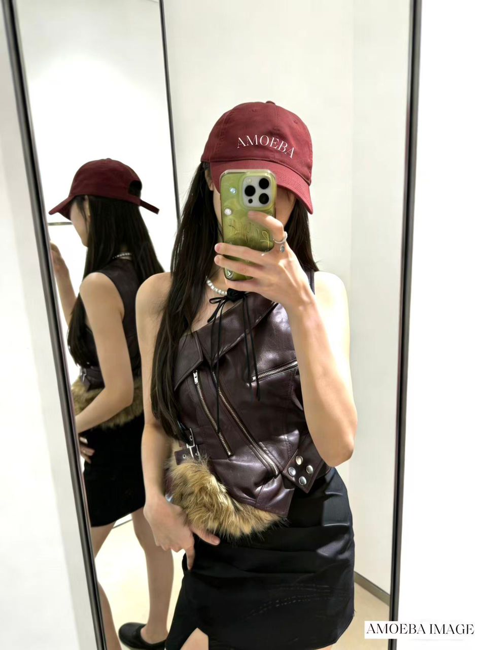 单肩皮衣